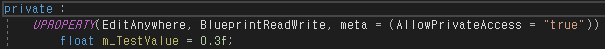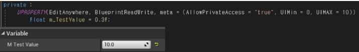 - private 변수지만, meta = ( AllowPrivateAccess = “true”) 명령어를 사용하여 에디터에서 보여줄 수 있다.